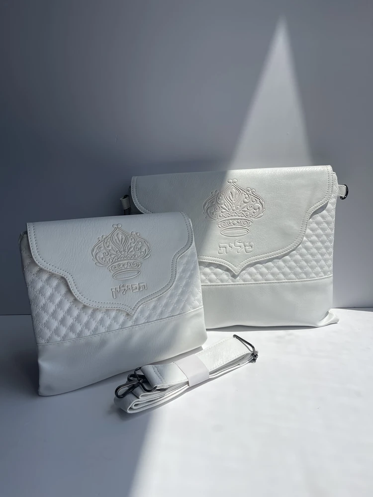 סט כיסויים לטלית תפילין דגם "כתר" צבע לבן