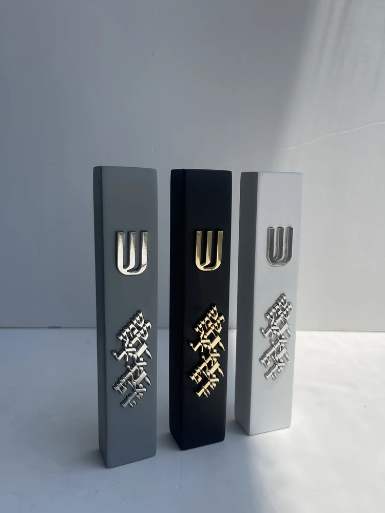 מזוזה בטון דגם "שמע ישראל" 12 ס"מאפורשחורלבן