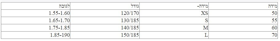 *בחר מידה (טבלת המידות נמצאת בתחתית העמוד):