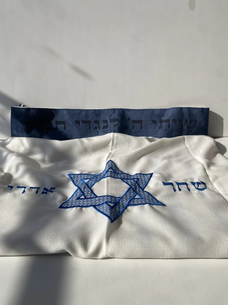 *טלית תשבץ 100% צמר רחלים, בד מונע החלקה