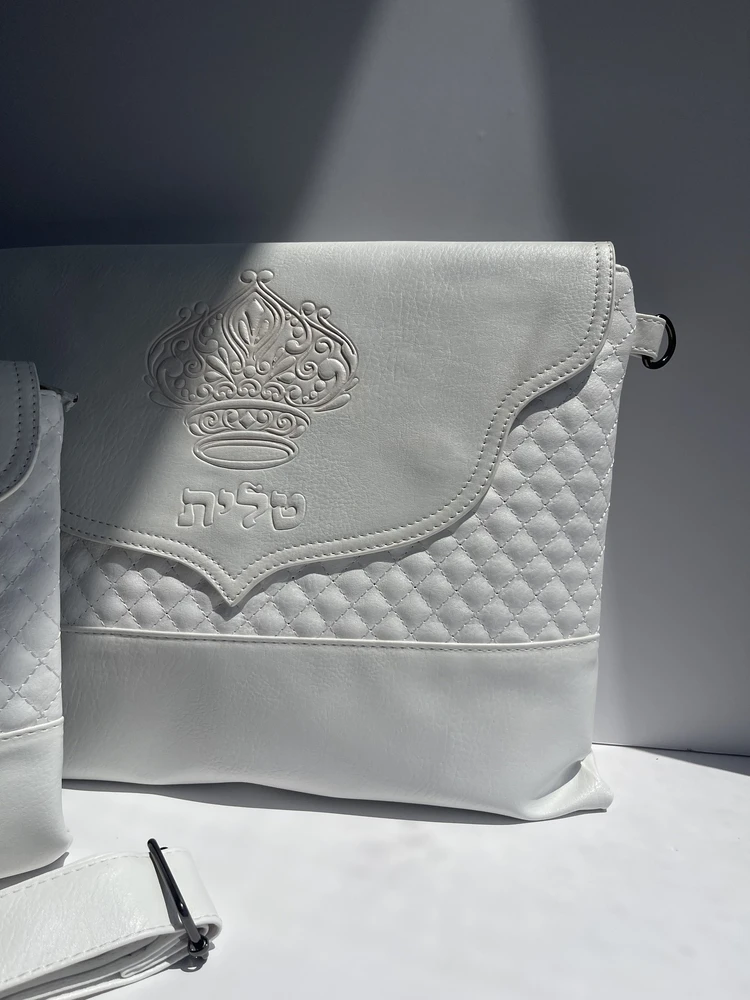 סט כיסויים לטלית תפילין דגם "כתר" צבע לבן