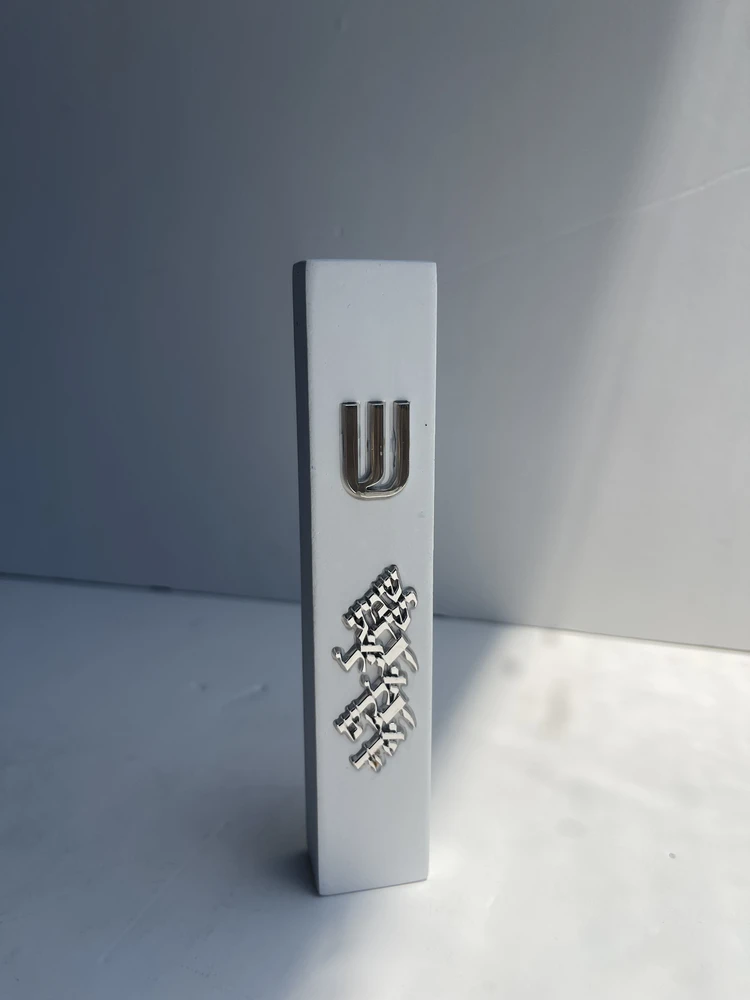 מזוזה בטון דגם "שמע ישראל" 12 ס"מאפורשחורלבן