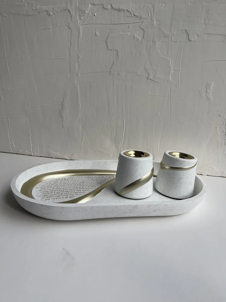 זוג פמוטים מפולירזין עם מגש דגם אבן