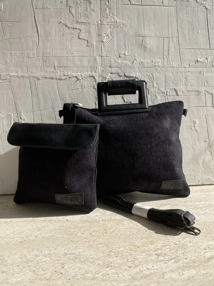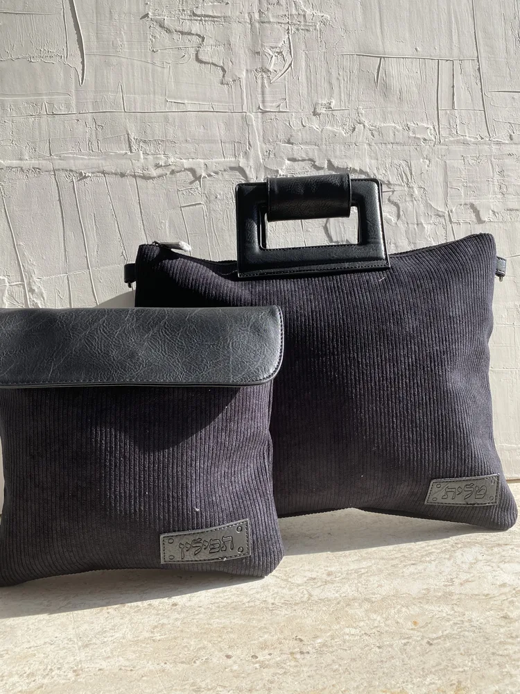 סט כיסויים לטלית תפילין דגם "קורדרוי שחור"